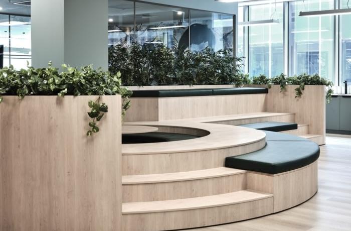 這是一家食品供應(yīng)商辦公室裝修設(shè)計(jì)案例,空間面積600平方米。工作區(qū)的焦點(diǎn)是排列在私人會(huì)議室和共享空間墻壁上的漂亮的定制布羅姆利藝術(shù)品。這些是新的環(huán)保和可回收包裝,具有相同的藝術(shù)。