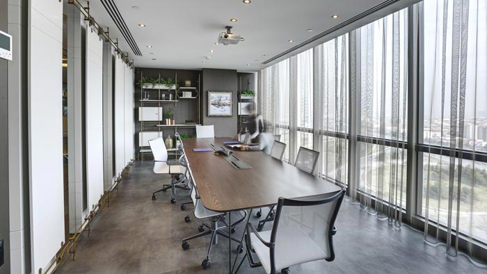 會議室的設(shè)計:設(shè)計師在設(shè)計的時候,將其安置在獨立的空間之中,設(shè)計師將會議桌安置在空間的中心區(qū)域,以此保證空間的動線得以完整,其次就是空間的一面完全由落地窗戶組成,這樣保證了空間的通透與明亮,讓會議變得有意思起來,讓氣氛不在沉悶。