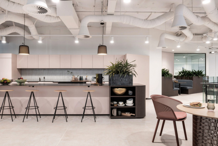 這種軟化似乎與其他目前流行的話題相關(guān),比如辦公室聲學(xué)的改善,隱私和電話空間的增加,以及從粗糙的、簡約的辦公室造型中擺脫一般的鐘擺。