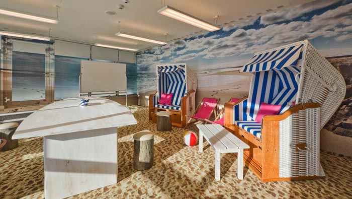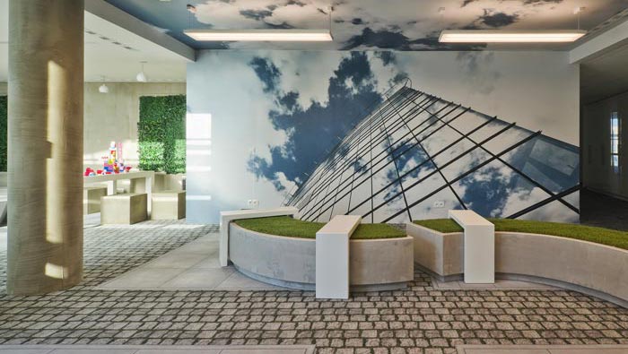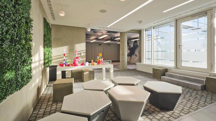 網(wǎng)絡(luò)公司辦公室娛樂(lè)區(qū)設(shè)計(jì):此處的設(shè)計(jì)別具一格,設(shè)計(jì)師將休息區(qū)域與游戲結(jié)合在一起,即可以玩耍,凳子即可以坐、又可以坐,而且在做的時(shí)候可以隨意移動(dòng),游戲的加入讓空間有一種輕松的氛圍,讓客戶(hù)與企業(yè)在此處交流的時(shí)候,為空間的設(shè)計(jì)所俘獲。