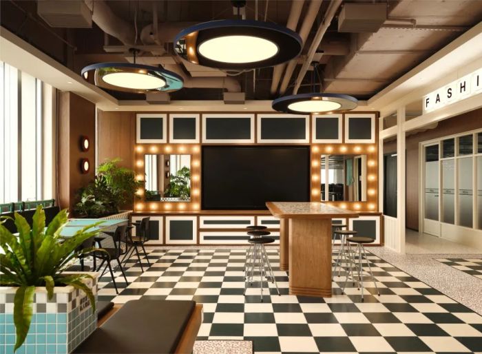 時(shí)尚層則營(yíng)造了宛若舞臺(tái)幕后化妝間的氛圍感,跑馬燈的化妝鏡、黑膠唱片等元素讓人一下回到上世紀(jì)風(fēng)華絕韻的上海灘。家居層則更為柔和靜謐,暖調(diào)的壁紙配合窗邊的綠植,讓人有身處在家的松弛感。