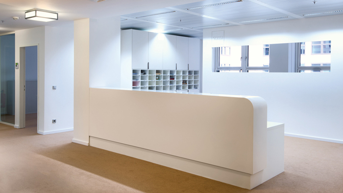 前臺的設(shè)計(jì):對于醫(yī)療行業(yè)來說,大家最熟悉的莫過于白衣天使,設(shè)計(jì)師在此次設(shè)計(jì)中,也采用了白色做為空間的主元素,目的就是讓顧客進(jìn)入空間之后,可以一眼就看出企業(yè)的屬性,同時(shí)白色也有讓人心情愉悅的屬性,陽光照入室內(nèi)為空間增添了些許魅力。