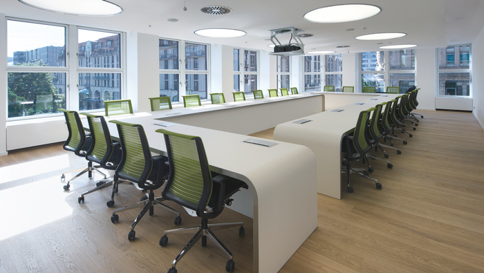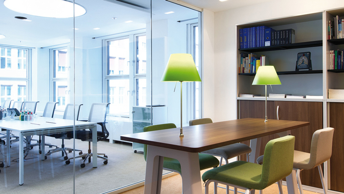 會議室的設(shè)計(jì):此處可以容納將近30個(gè)人,在這里開放是空間的主旋律,在這里員工感受到的是一種輕快之感,這也是設(shè)計(jì)師希望看到的,在設(shè)計(jì)師看來一個(gè)輕快的會議空間,可以在無形中化解對于員工的壓力,讓員工可以在這里的空間中得以自由發(fā)揮。