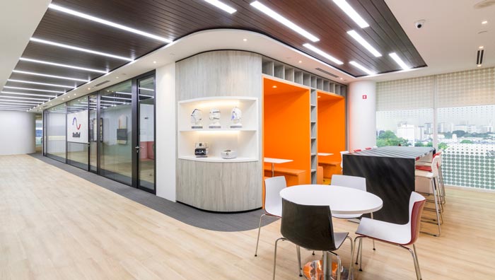 員工休息區(qū)域的設(shè)計:這樣的空間設(shè)計師將其安置在空間的每一個角落,這樣設(shè)計的目的就是希望給員工一個獨立的思考空間,在此次一個部門、志同道合的朋友,都可以在這樣的空間中討論和休息,這樣一來可以為創(chuàng)意提供一個成長的平臺,二來也可以增加企業(yè)內(nèi)部的向心力。