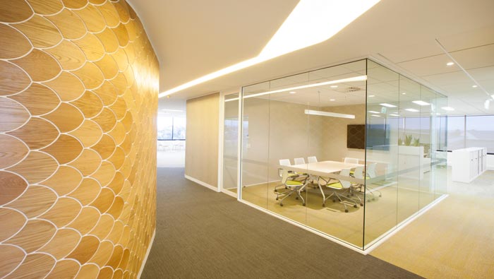 會議室的設計:此處給人的第一感覺就是明亮,有一種撥開云霧見青天的感覺,這樣的感覺與會議的屬性類似,會議本身就是為了解決問題,設計師希望光亮可以給員工帶來更多的創(chuàng)意與想法,也希望在這樣的辦公環(huán)境中,企業(yè)可以越做越好。