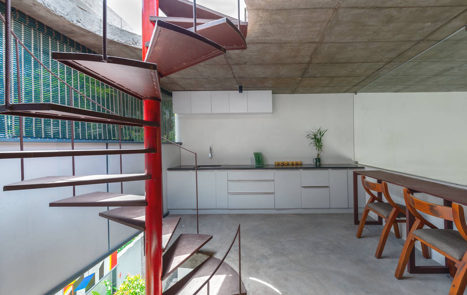 設(shè)計(jì)師為他的團(tuán)隊(duì),他的家人和朋友,以及那些想要利用他的專業(yè)知識(shí)的人提供一個(gè)空間。促進(jìn)思想交流、學(xué)習(xí)、聚會(huì)、休閑、工作和生活的平臺(tái)。作為一個(gè)人和建筑師完全適合他的建筑/建筑的地方。團(tuán)隊(duì)的一種隨意的設(shè)置意味著有一個(gè)樸素但沉思的空間來(lái)保持創(chuàng)造性的情緒,意識(shí)形態(tài)和哲學(xué)-建筑師辦公室。
