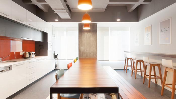 600平方辦公室茶水間設(shè)計:相信對于辦公室了解的人一定能夠知道,茶水間的設(shè)計大部分都是與休息區(qū)域融合在一起,這樣做的目的就是希望將空間的作用發(fā)揮到極致,設(shè)計師在此基礎(chǔ)上對空間進(jìn)行了升級,色彩的加入為空間增添了一種全新的魅力。