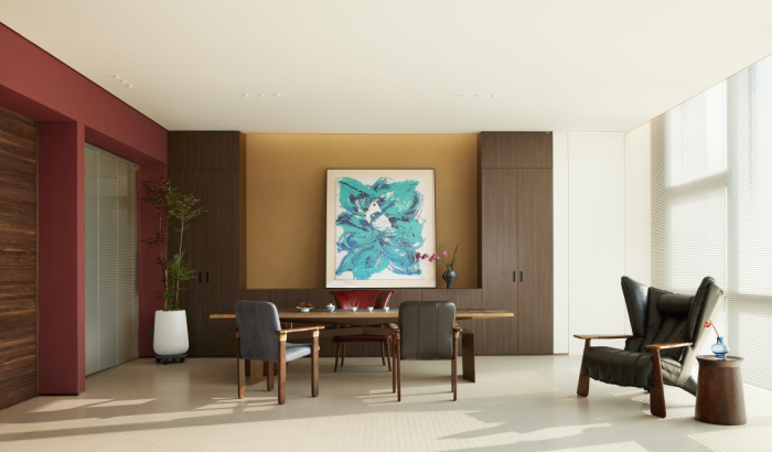 這是一個(gè)船運(yùn)公司的辦公室設(shè)計(jì)。設(shè)計(jì)師通過思考空間、自然和使用者之間的關(guān)系,將空間定義為一個(gè)敘述者,通過動線和介質(zhì)的作用,傳遞生活態(tài)度。
