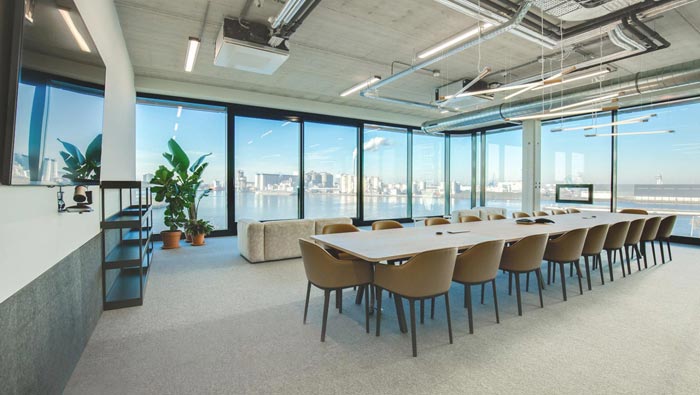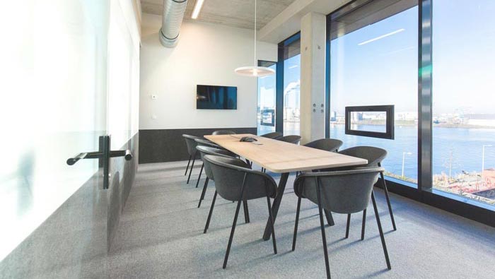 辦公室大會(huì)議室裝修:此處位于一個(gè)獨(dú)立的空間之中,在此處可以明顯的看出軟裝的地位,在空間之中硬裝的部分全部表現(xiàn)在空間的格局之上,其他部分均采用的是軟裝的搭配方式。
