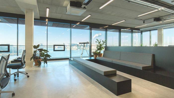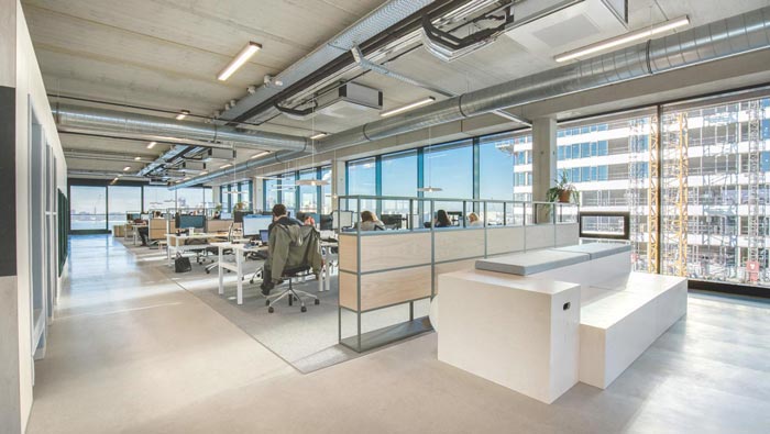 辦公室辦公區(qū)裝修:進(jìn)入此處后開放式的空間引入眼簾,給人的第一感覺就是我若在此地辦公該有多好,保證員工的創(chuàng)新能力也十分必要,所以人性化的辦公空間也就勢在必行。