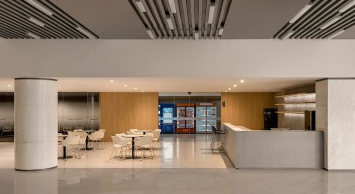 這是一個白色電器行業(yè)的辦公研發(fā)中心,設計師以海為靈感,打造了一個多元、開放、包容的辦公空間。