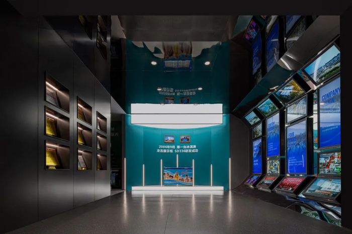 以光為向導,每個展區(qū)以線條燈作為聯(lián)系,在暗色中,光成為展廳中最有力的向導,不同透明度的材料也被不同程度應用到空間劃分中。