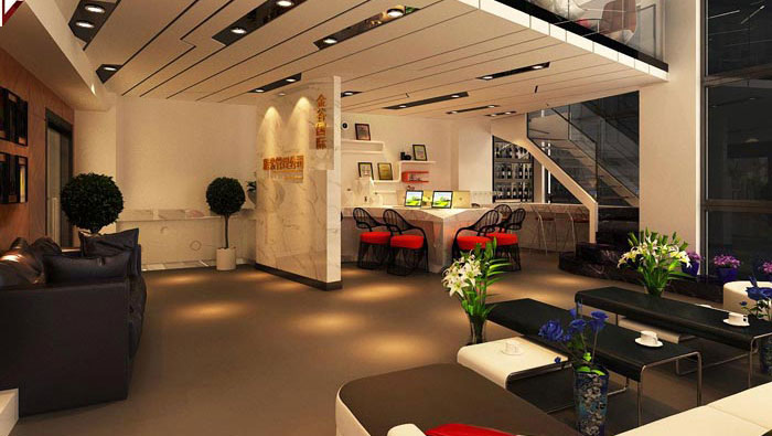 一樓空間設(shè)計(jì)包括:形象墻、茶水間、接待區(qū)域、辦公區(qū)域,在小空間中劃分出如此多的區(qū)域,對(duì)于設(shè)計(jì)師來(lái)說(shuō)也有一定的難度,最后設(shè)計(jì)師采用將硬裝與軟裝相結(jié)合的方式,合理的劃分出各個(gè)功能區(qū)域。