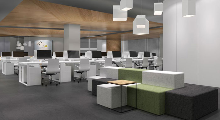 辦公區(qū)域的設(shè)計,設(shè)計師主要為了突出交流功能,以固定的工作位置來增強團隊合作的便利性。