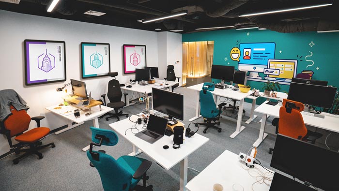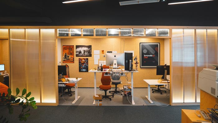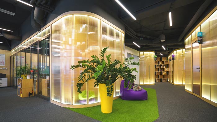辦公場(chǎng)所的設(shè)計(jì):此處主要為后期測(cè)試與前端工作人員辦公的場(chǎng)所,在這里開(kāi)放與私人相互結(jié)合在一起,開(kāi)放的空間讓員工如一家人一樣,私人的設(shè)計(jì)讓員工擁有自己獨(dú)立的辦公空間,這樣做的目的就是給每一個(gè)員工留下獨(dú)立思考的空間,消除空間的弊端,讓辦公更加有趣。