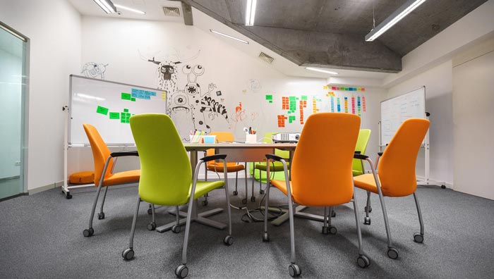 會(huì)議室的設(shè)計(jì):會(huì)議桌被設(shè)計(jì)師安置在空間的中心,這樣做的目的就是為了突出空間的重點(diǎn),四周也被設(shè)計(jì)師很好的加以利用,白色黑板、標(biāo)簽墻壁的相互搭配,讓會(huì)議變得有趣起來(lái),讓一切難題都被記錄下來(lái),這樣可以提升企業(yè)的辦事效率,讓遺忘在此次無(wú)處遁形。