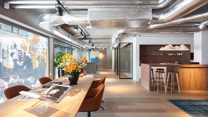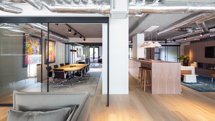 本次為房地產開發(fā)商辦公室裝修設計項目,設計面積在200平方左右,設計師在與業(yè)主的交流中,了解到業(yè)主希望打造一個舒適、高品質的辦公空間,設計師為了使光線在室內空間自由的流動,故此內壁采用鋼型材玻璃制成,隨著辦公室與各個區(qū)域的劃分,設計師為企業(yè)營造了一個理想的辦公空間。