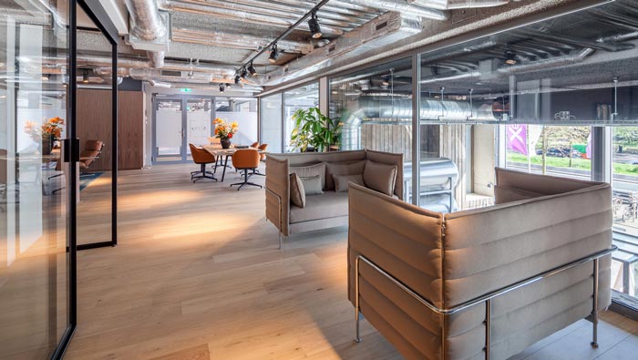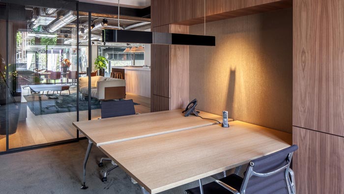 通話空間的設計:由于企業(yè)的工作需要,打電話是工作的日常所需,故此設計師也將其列入設計的重點,隔音門關起來之后,為員工打電話營造了一個安靜的空間,在這里與外界隔絕,適合員工在這里打電話,同時此處在閑暇之時,也可以滿足企業(yè)各種不同的需要。