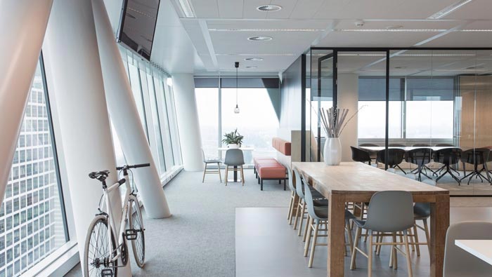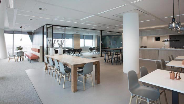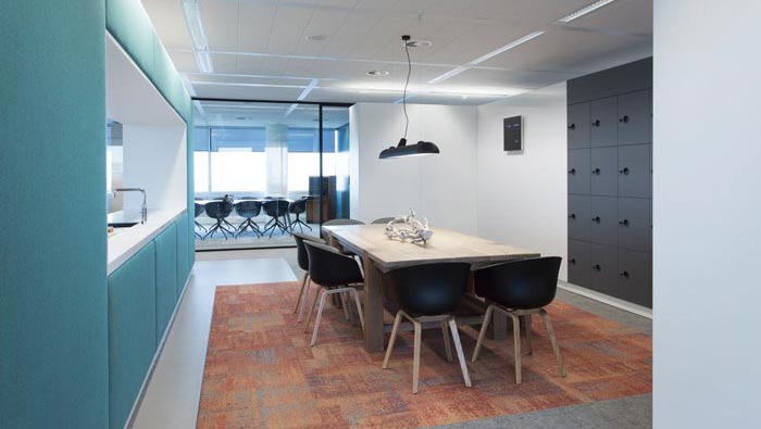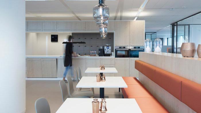 小型辦公室茶水間設計:此次的設計類似于咖啡廳,設計師這樣設計的目的,就是希望為茶水間帶來更多的屬性,讓茶水間承擔起更多的責任,因為在設計師看來茶水間是員工休息的不二場所,此處不僅可以滿足客戶、員工在此處交流、洽談,同時也讓茶水間更趨于人性化。