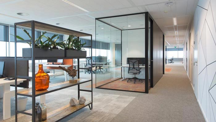 本次為小型辦公室裝修設計項目,辦公面積為110平方,設計師在辦公室裝修設計之中,發(fā)現(xiàn)辦公空間呈長方形分布,設計師認為這樣的空間格局對于設計十分有利,故此在辦公室設計中采用開放式設計,目的就是為了消除空間的阻礙,設計師在辦公室設計中重在調(diào)節(jié)各個辦公空間之間的關系。