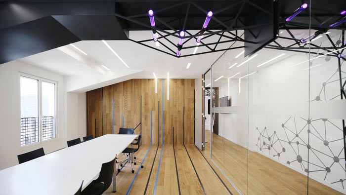 會(huì)議室裝修效果圖:線條在室內(nèi)環(huán)境中無所不在,只要是有形的事物,就有線條的存在,設(shè)計(jì)師做的就是將線條具象化,具象的線條好像是高速流動(dòng)的思維,提升空間的討論氛圍。