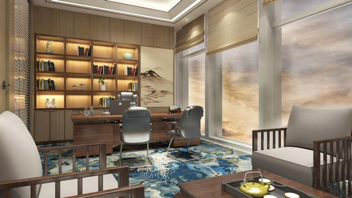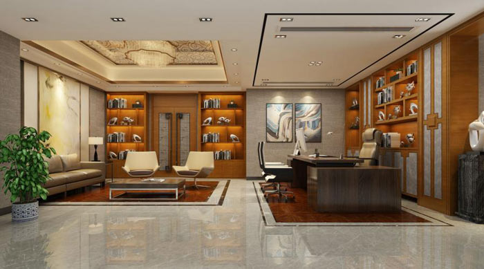企業(yè)總經(jīng)理辦公室設(shè)計:整個空間分為辦公、接待、洽談、休息,這里是總經(jīng)理個人的世界,總經(jīng)理在這里安心辦公,在這里思索企業(yè)的未來,在這里為企業(yè)的未來謀劃。