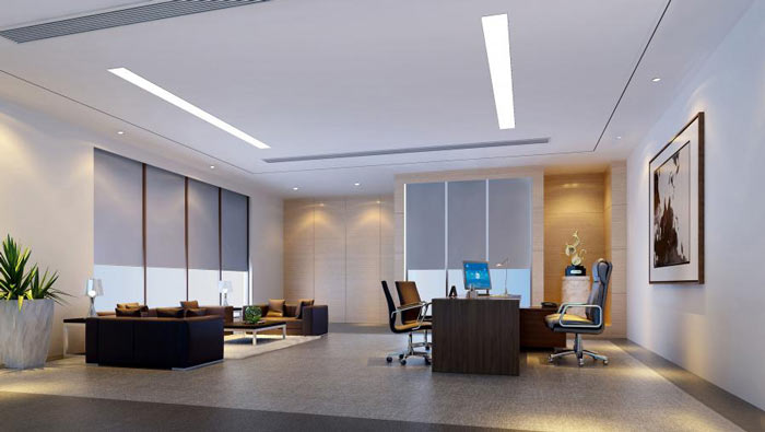 經(jīng)理辦公室設(shè)計(jì):落地窗將光源引入室內(nèi),這是設(shè)計(jì)師設(shè)計(jì)的一貫作風(fēng),設(shè)計(jì)師希望工作中要有陽光,有陽光就有光明,這也是設(shè)計(jì)師對(duì)設(shè)計(jì)的獨(dú)特感受。