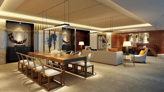 經(jīng)理辦公室設(shè)計(jì):此處空間運(yùn)用的是新中式風(fēng)格,設(shè)計(jì)師希望的就是在心靈與需求之間尋求平衡,為總經(jīng)理打造一個(gè)凈化心靈、滿足需求的雙重屬性辦公空間。
